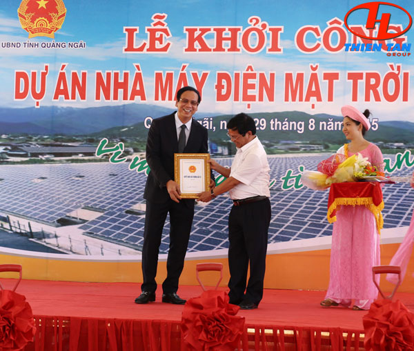 Ông Huỳnh Kim Lập (CTHĐQT Thiên Tân Group) lên nhận giấy chứng nhận đầu tư từ lãnh đạo tỉnh Quảng Ngãi.